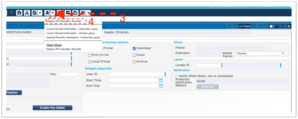 -Click the Dropdown arrow next to the printer icon, select 'Display 2FA Activation Barcode